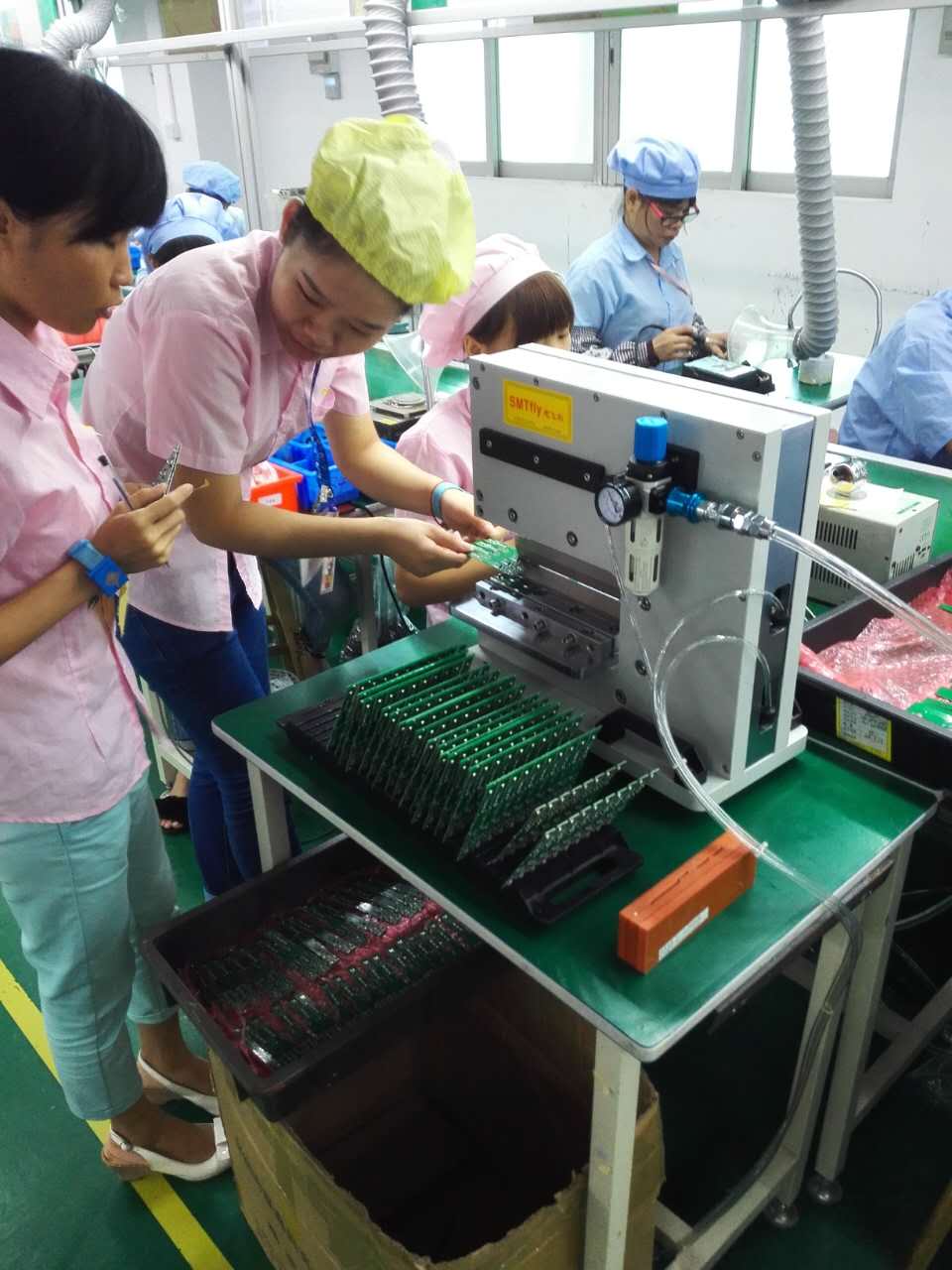 Yesterday, our after-sell service team visited a new local customer who bought our PCB separator SMTfly-200J last week. They are using the machine separating their FR4 panels well.